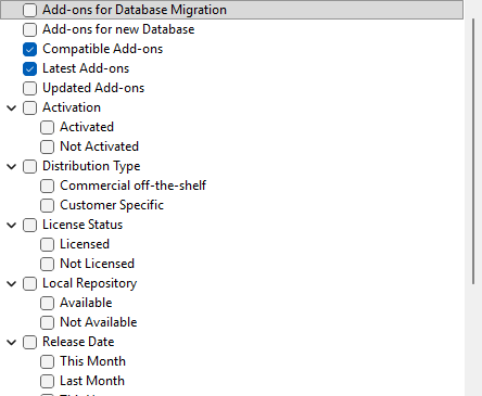 To see add-ons that you have not licensed and where you might be interested in a trial version, activate the Not Licensed checkbox. For details, see the Add-on trial topic. |